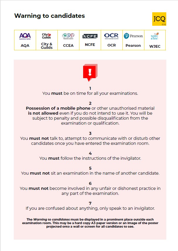 Examinations Officer – Mr J Cashmore, Examinations Officer (j.cashmore@nsg.kevibham.org) (0121-513 0189)
